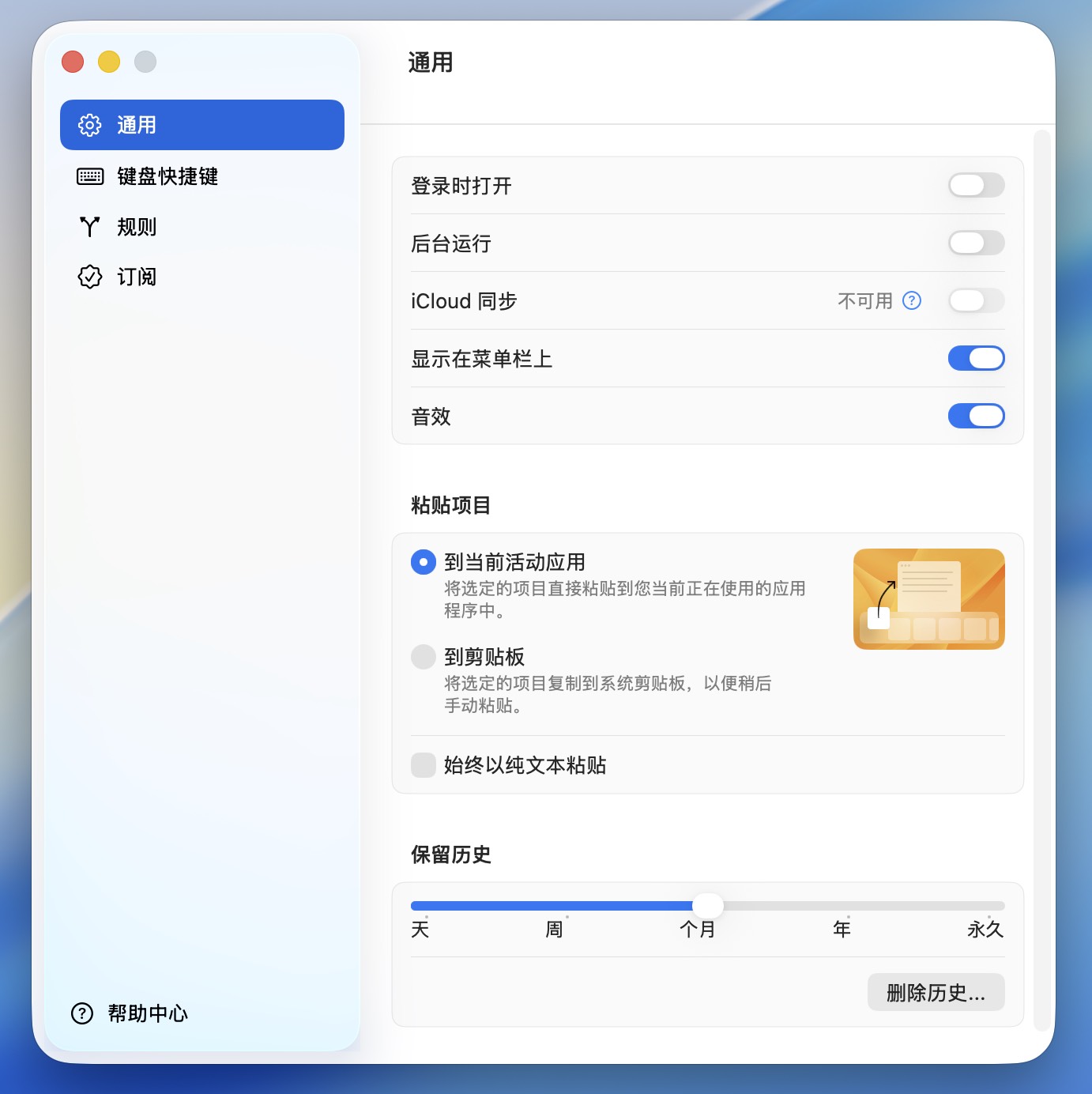 多设备同步——依托 iCloud,用户在 Mac、iPhone 和 iPad 之间都能无缝调用历史剪贴内容。