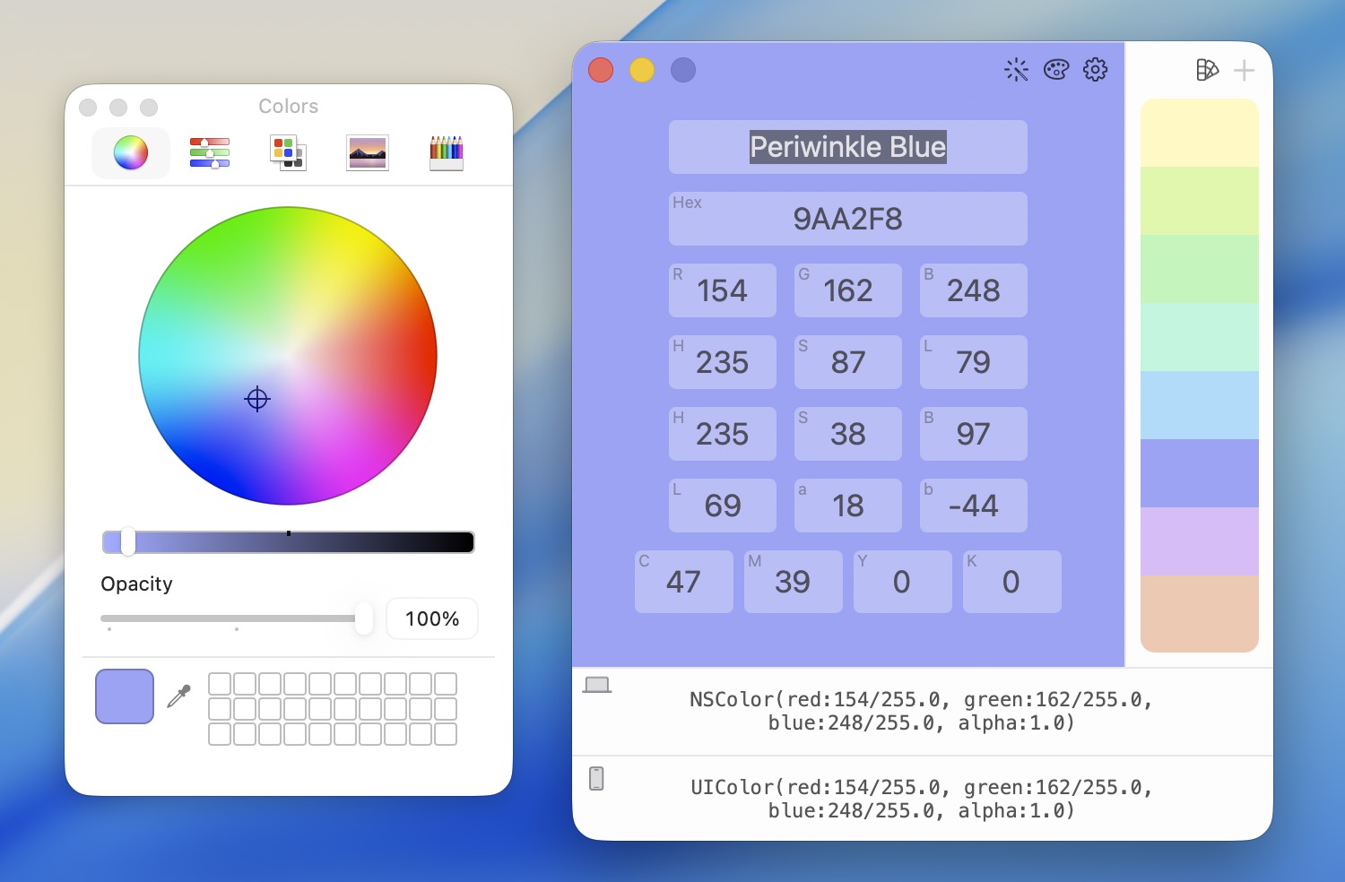 与 macOS 深度集成:ColorWell 将自定义调色板同步至系统颜色选择器,使配色能在多款应用中直接使用,保持系统一致性。