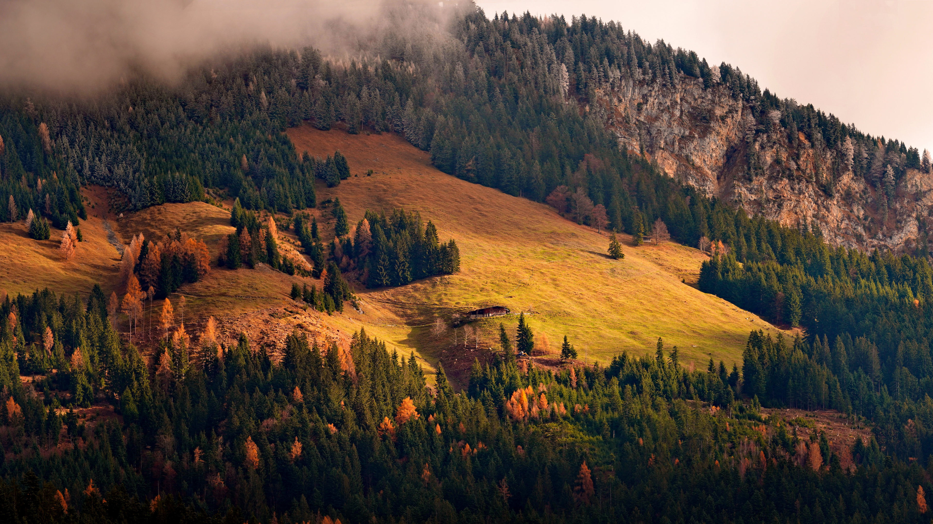 景观 山脉 树木 云 秋天 松树 超宽 自然 4K壁纸