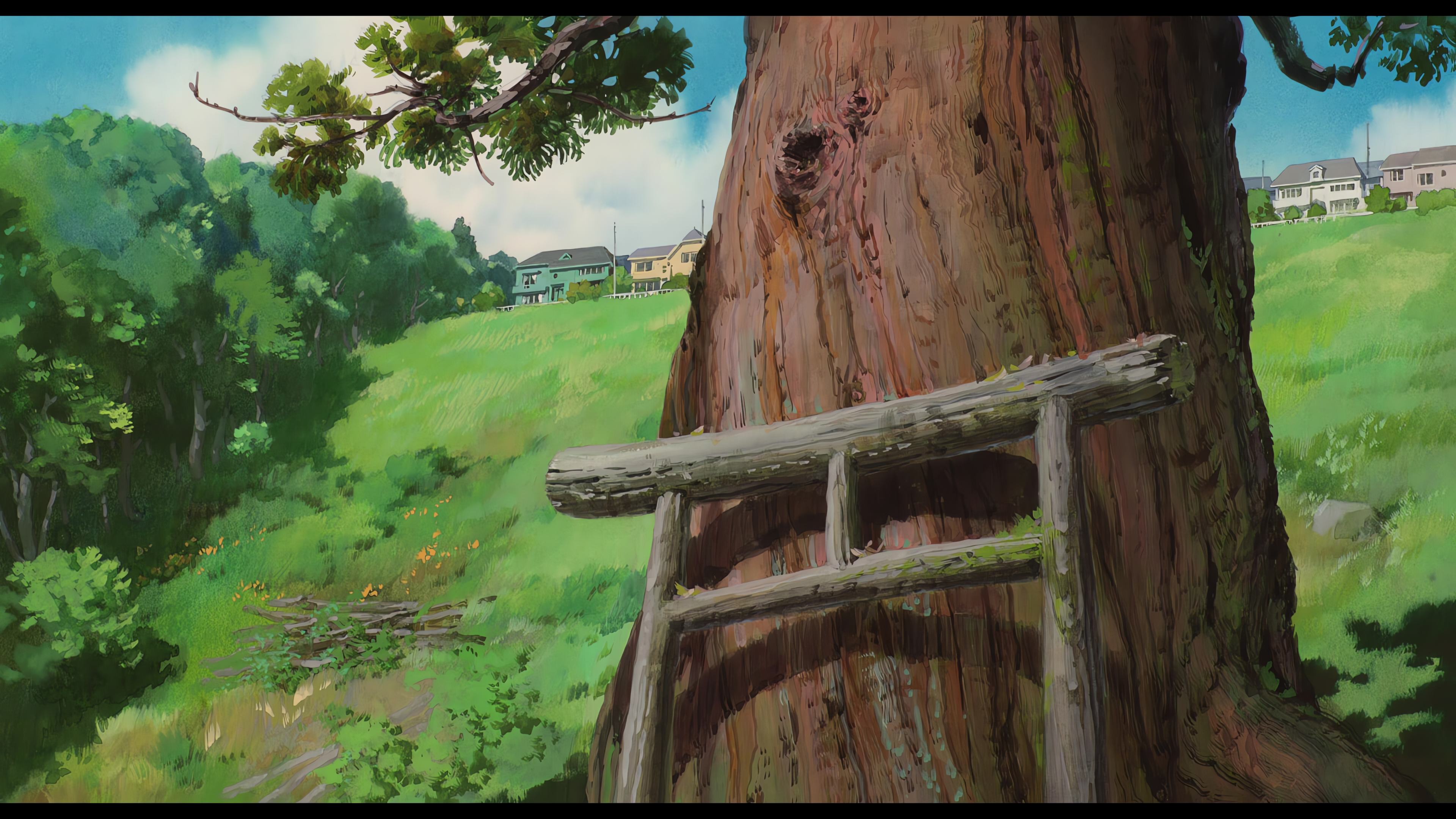 千与千寻 动画 树 放大 天空 云 4K壁纸