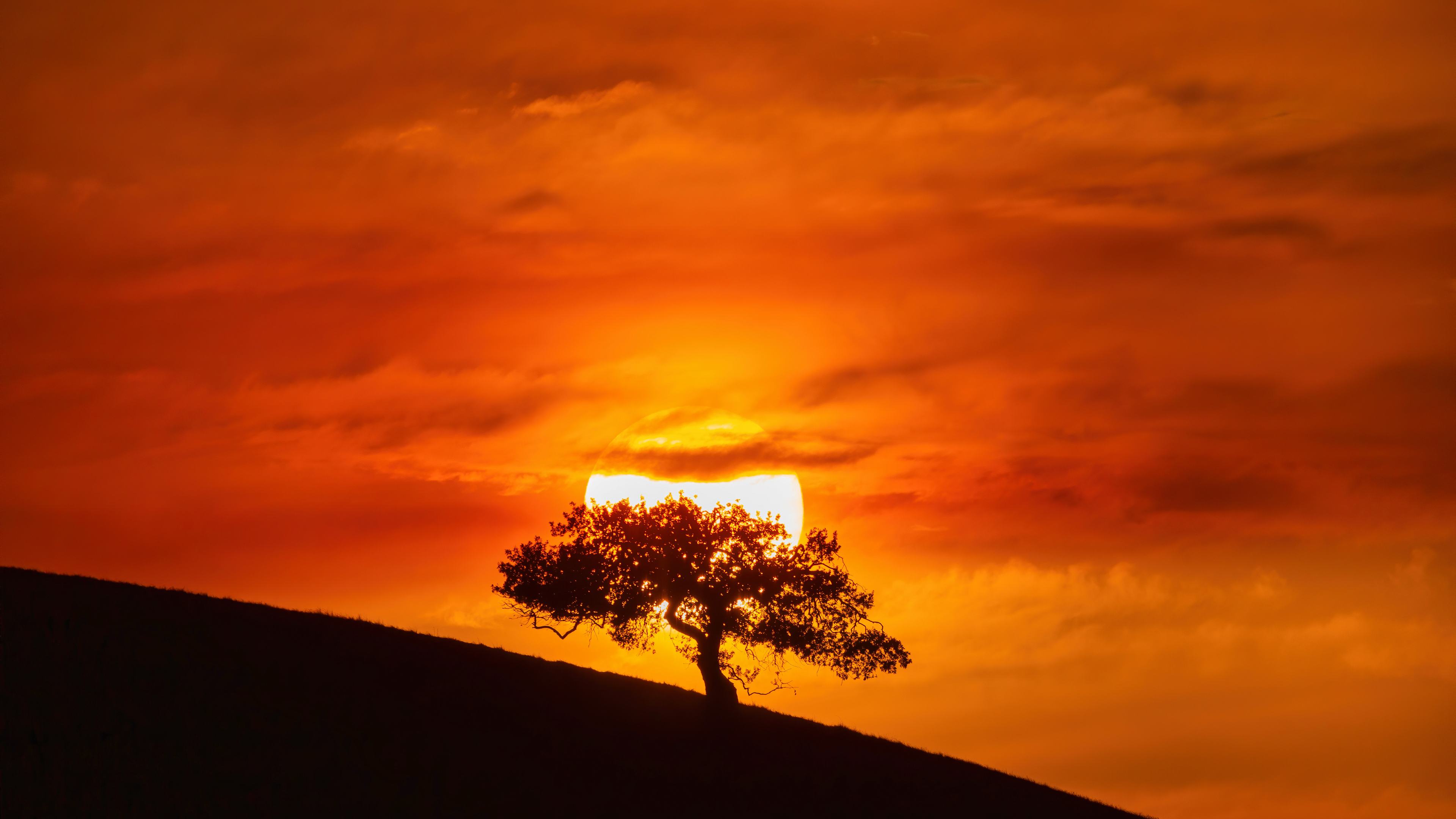 自然 风景 日落 树木 山丘 云 橙色天空 剪影 太阳 摄影 天空 4K壁纸