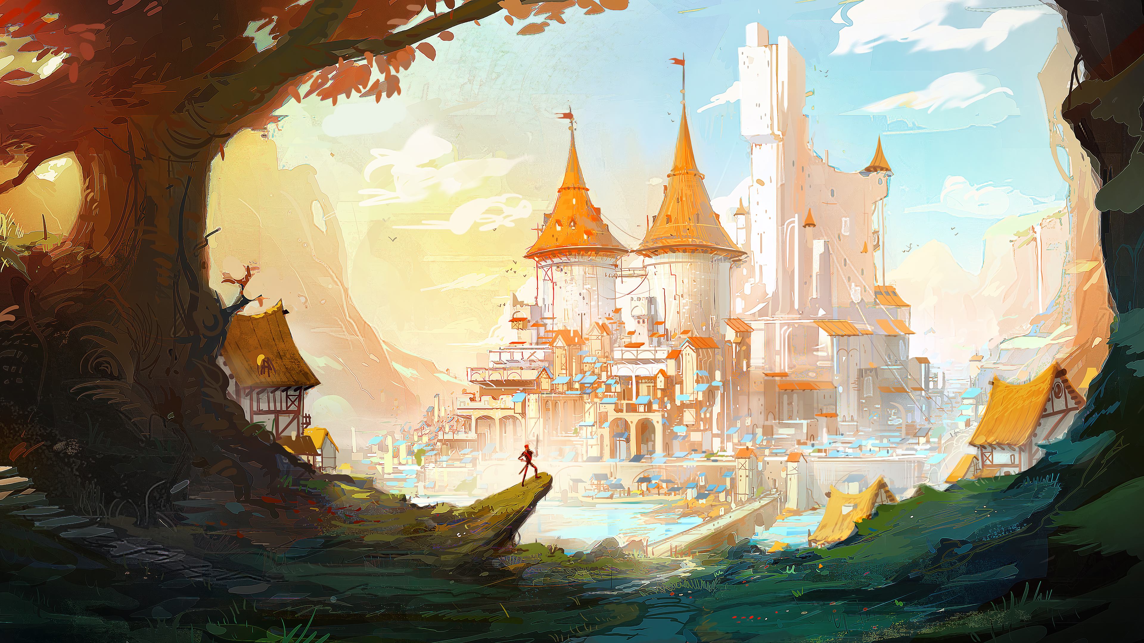 城堡 云 插图 数字艺术 概念艺术 风景 天际线 城市 树木 4K壁纸