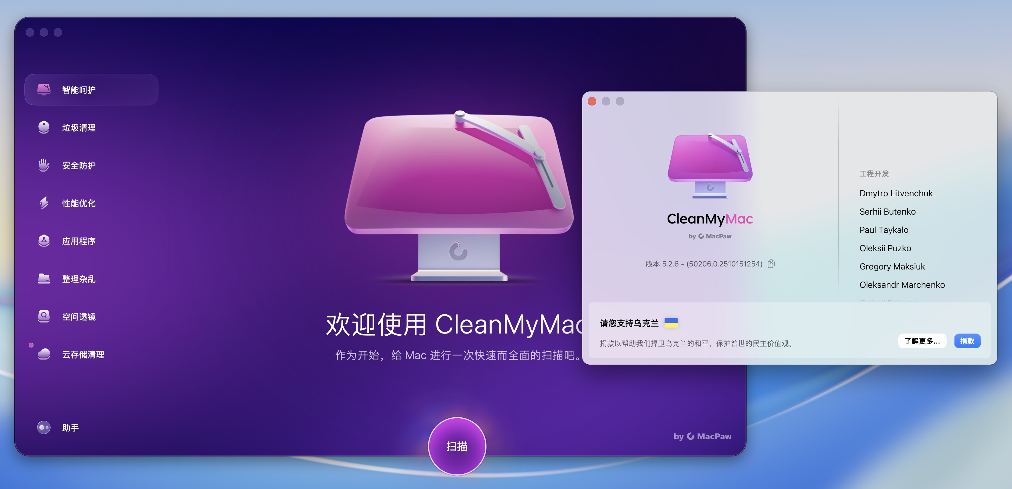 CleanMyMac X(中文常称“CleanMyMac X 全能清理大师”或简称 “CleanMyMac”)是由 MacPaw 公司开发的一款综合性 macOS 系统优化与清理工具。它集系统垃圾清理、性能优化、恶意软件扫描、隐私保护与磁盘管理等功能于一体,让用户可以通过一个工具维护 Mac 的健康状态。新版支持 macOS 最新系统版本,针对 Apple Silicon 芯片做了性能适配与界面优化,适合日常使用频繁但系统渐趋缓慢或存储空间吃紧的用户群体使用。