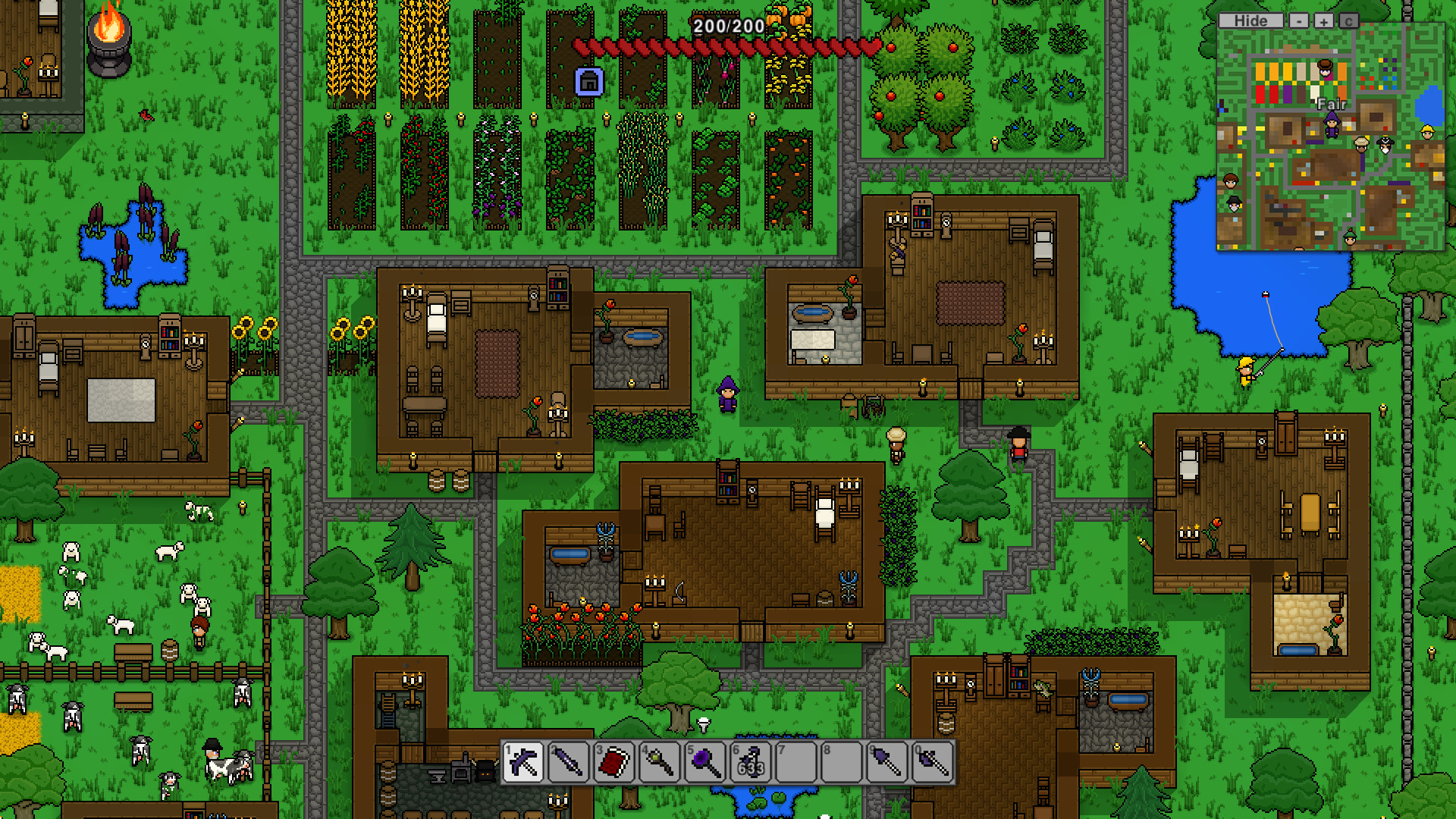 建造与扩张:通过采集木材、矿石和其他材料,建造房屋、农场、作坊等设施,打造属于自己的小镇。