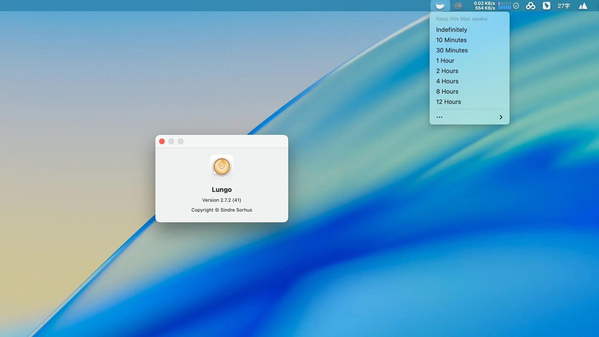 在 Mac 上使用 Lungo 的体验极为流畅。软件常驻于菜单栏,占用资源极低,不会影响其他应用运行。点击图标即可快速选择保持唤醒的时长,如 10 分钟、1 小时、4 小时或无限制模式,非常直观。界面风格简洁统一,契合 macOS 设计语言,支持浅色与深色模式切换。Lungo 与 macOS 系统深度集成,响应速度快且稳定,不会引起系统异常。对于开发者、设计师或长时间工作的用户来说,Lungo 提供了一种优雅的方式来保持工作不中断,同时也避免了反复修改节能设置的麻烦。