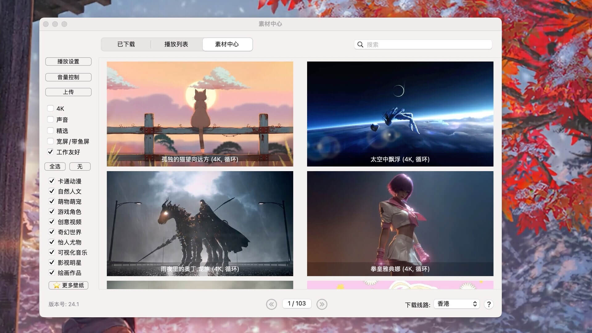 支持视频、渐变、自然景观等多种动态壁纸形式,为桌面提供多样化视觉体验。 -