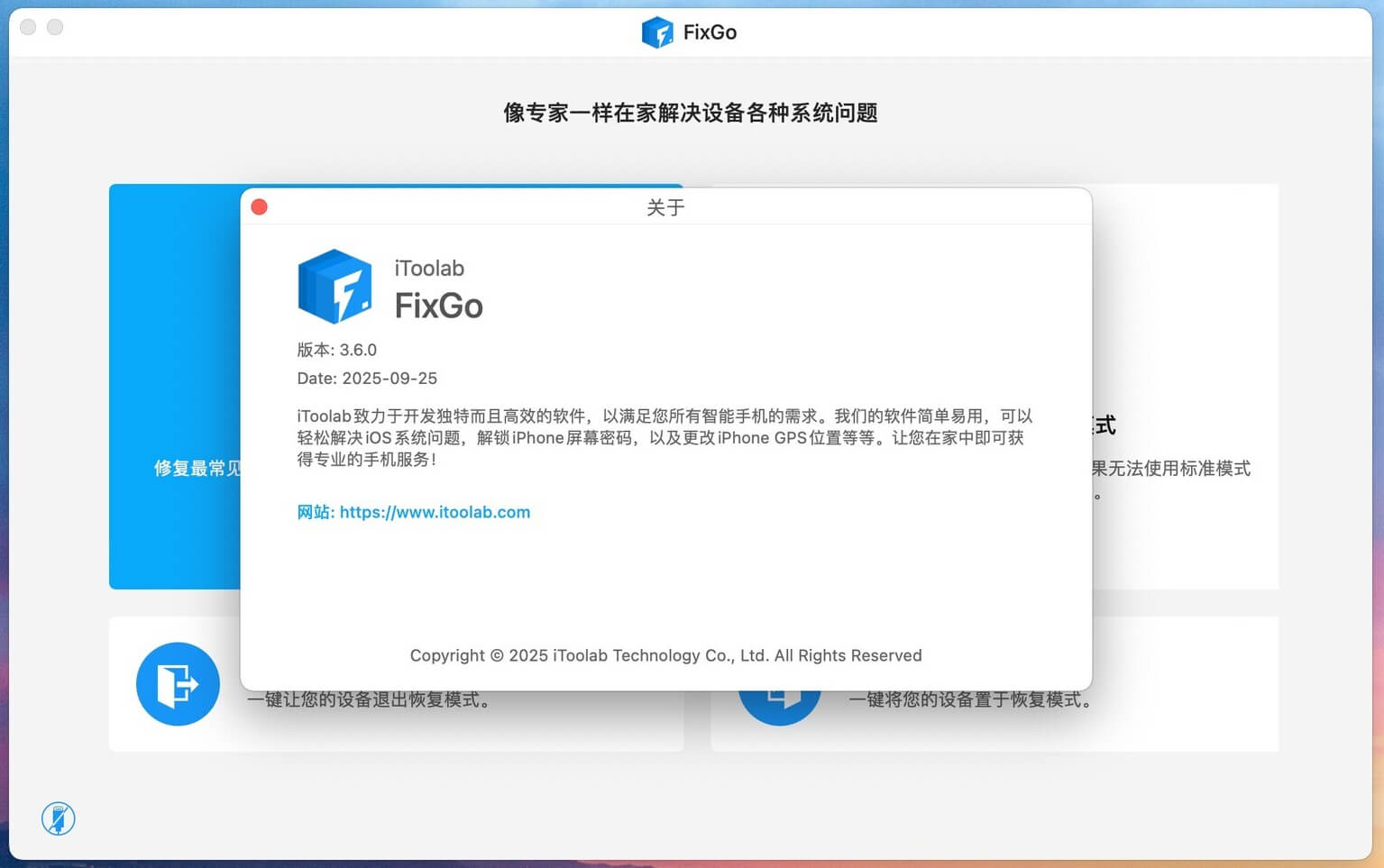 iToolab FixGo for Mac 是一款专为解决 iOS 系统故障而设计的专业修复工具,能够在无需越狱、无需数据清除的前提下,修复设备卡在恢复模式、白苹果、黑屏、无限重启等多种系统问题。作为 Mac 版软件,它在操作流畅度、兼容性和设备连接稳定性方面表现出色,可帮助用户在 macOS 环境下快速恢复 iPhone 或 iPad 的正常使用。FixGo 主打“安全修复”和“无数据丢失处理”,同时提供高级修复模式应对更复杂的系统错误,是面向普通用户与技术人员的综合型 iOS 系统修复解决方案。