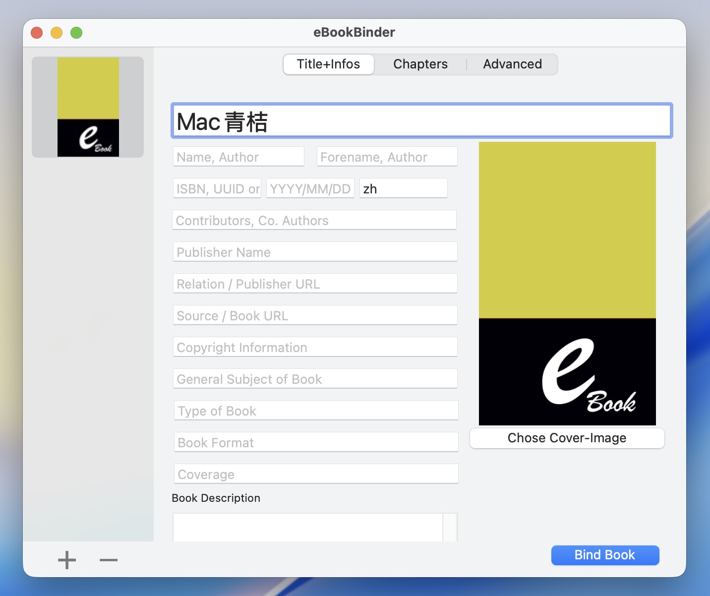 eBookBinder 在 macOS 上运行流畅,界面简洁,逻辑清晰。用户只需导入章节文件、设定元数据和封面,即可轻松导出标准电子书格式。整个制作过程直观高效,即便是初学者也能快速上手。支持自定义章节顺序、封面图、作者信息和语言设定,制作出符合个人需求的 EPUB 文件。