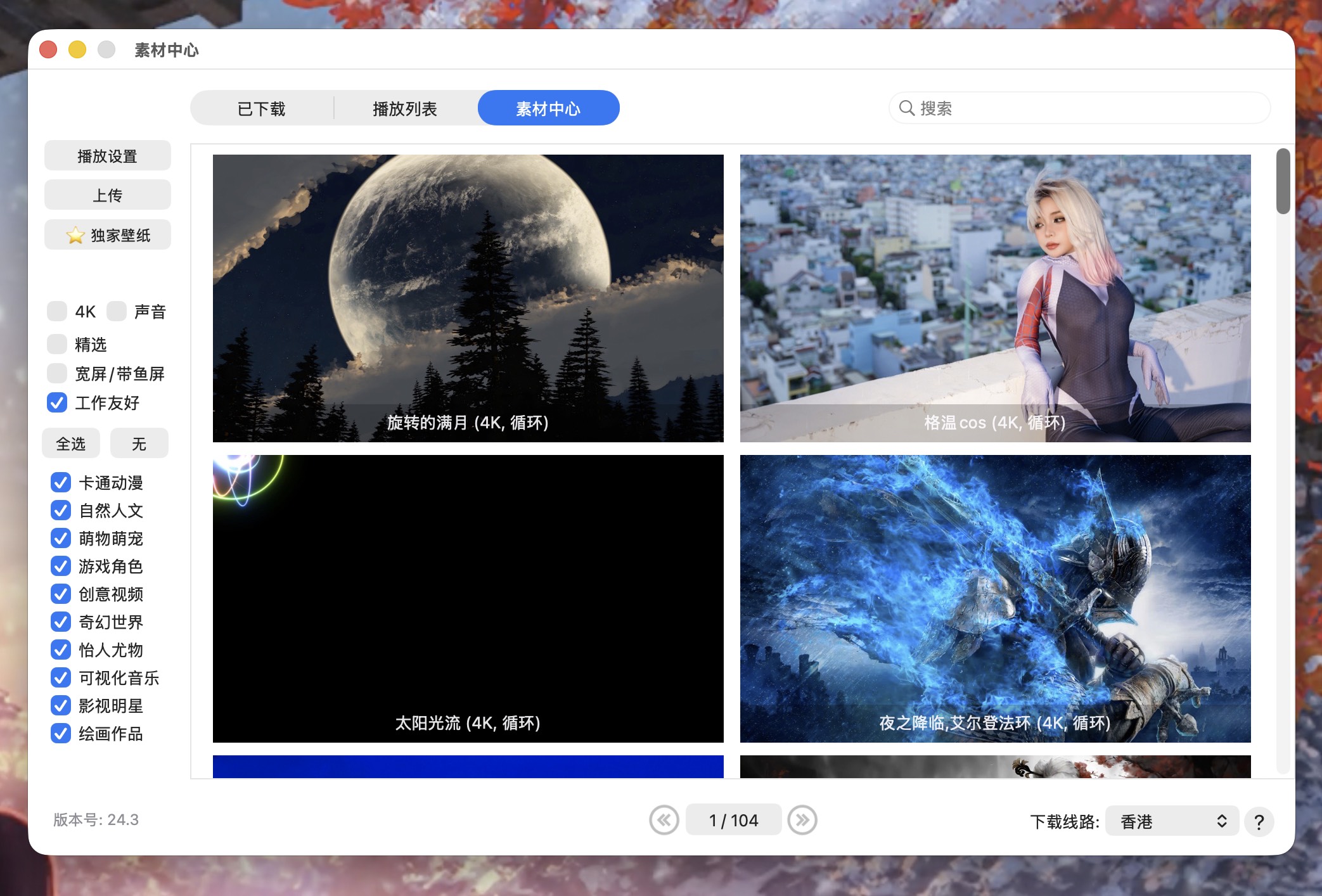 节能与性能优化:动态壁纸在不活动状态下自动降低刷新率或暂停动画,减少 CPU/GPU 占用,保证 Mac 性能。