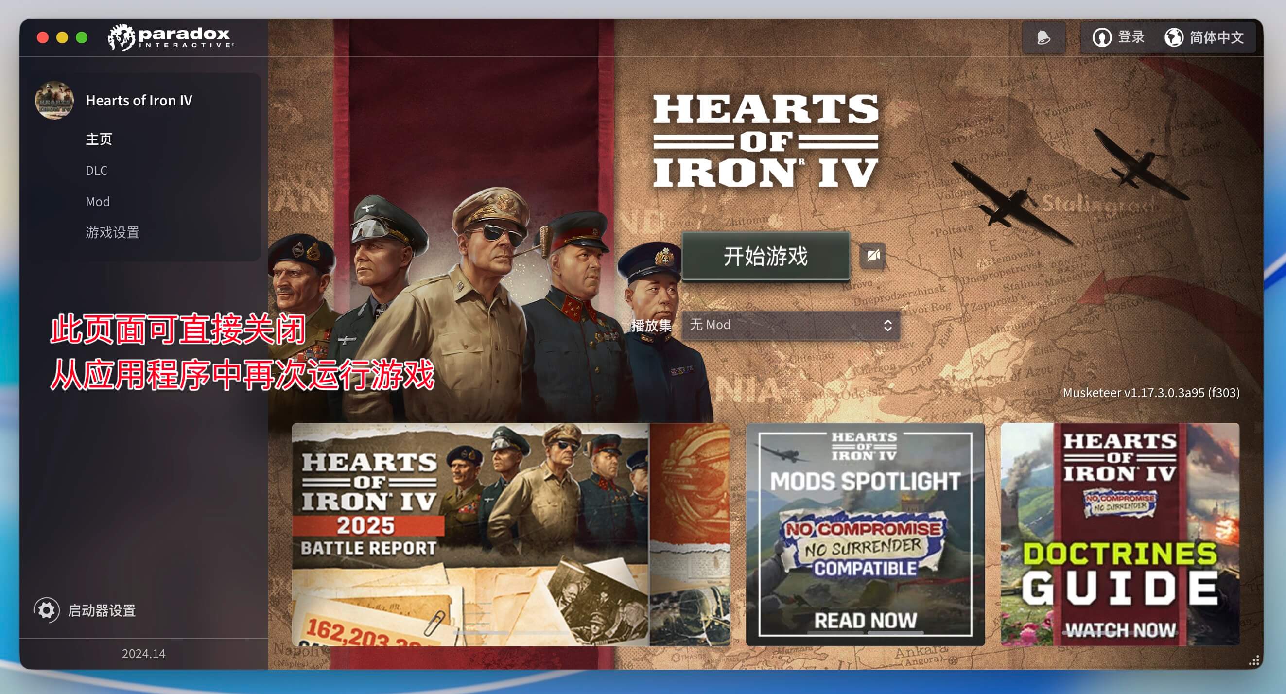 1.退出启动器,删除文稿里的 Paradox Interactive 游戏配置文件夹,