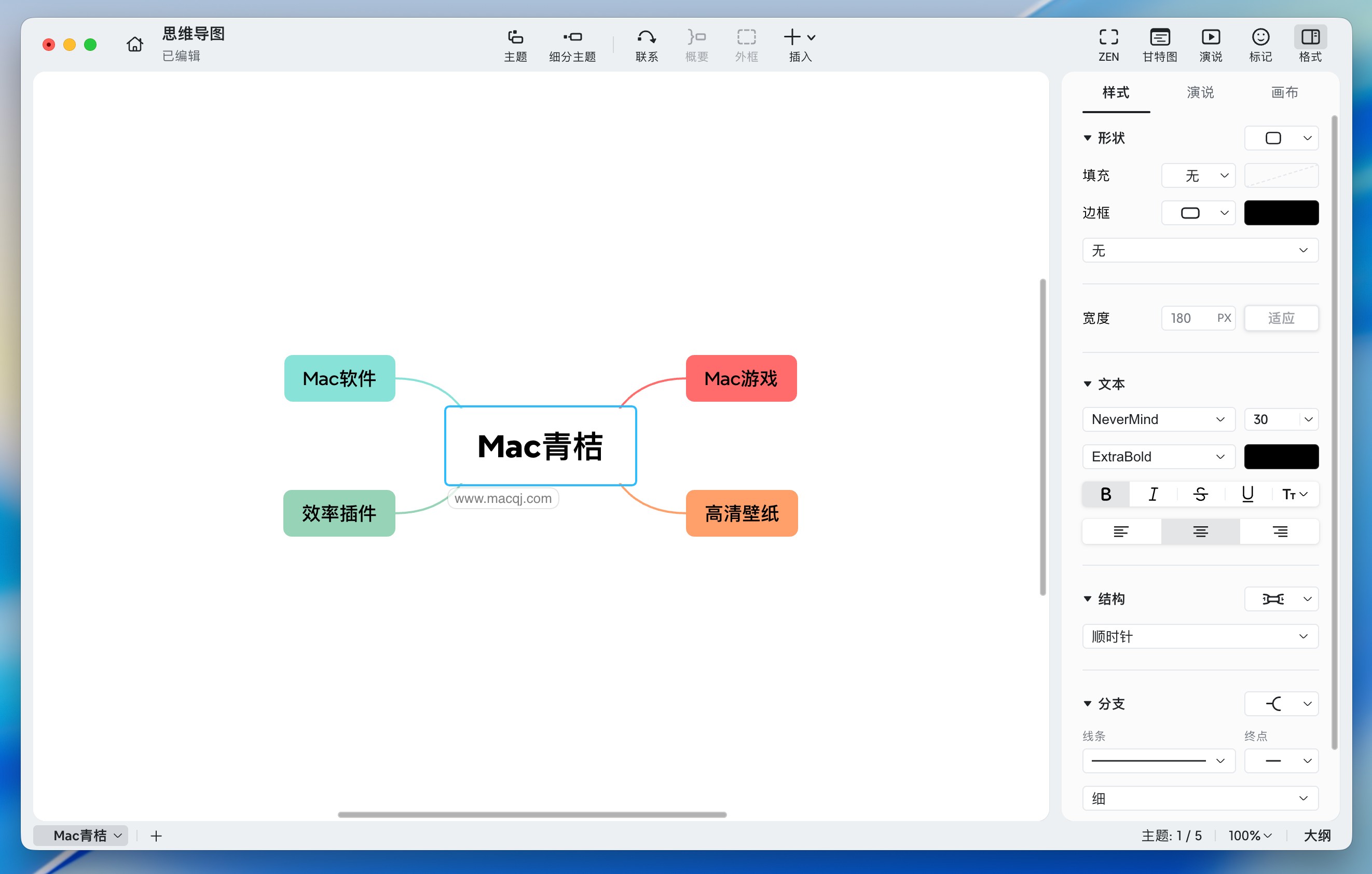 在 macOS 上使用 XMind Pro 2026,整体体验流畅、反应迅速。启动后画布即时响应用户操作,无论是添加节点、调整结构还是插入图像、标签,都能够做到无延迟反馈。工具栏与右侧属性面板布局合理,功能清晰可见且与 Mac 系统交互逻辑一致。脑图支持无缝缩放、拖拽节点、折叠分支和路径导航,大型思维导图也能保持良好的可视化效果。配合快捷键与触控板手势,让用户在构建思路时几乎不需中断流程,从而提升整体创造效率。