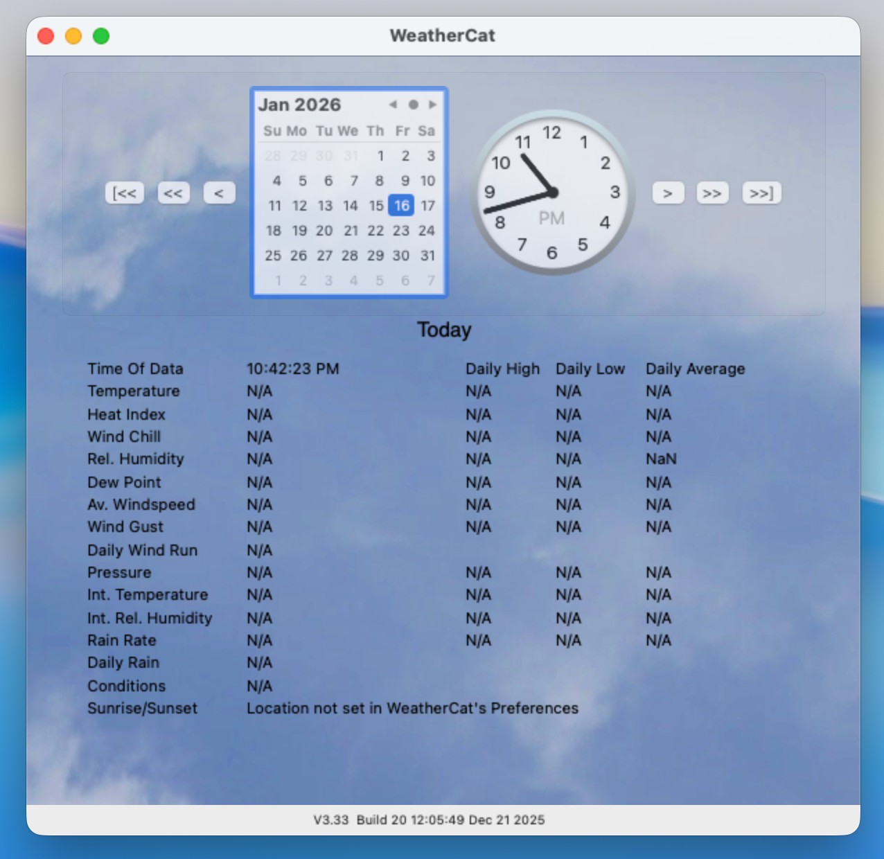 在 macOS 上使用 WeatherCat,整体体验偏向专业而沉稳。软件界面信息密度较高,但布局清晰,用户可以根据需求选择关注的气象指标,如温度、湿度、气压、风速和降雨量等。实时数据刷新稳定可靠,历史数据浏览和曲线查看非常顺畅。对于长时间运行的场景,WeatherCat 表现出极高的稳定性,能够在后台持续采集数据而不影响系统性能。整体操作逻辑贴合 Mac 桌面应用习惯,适合对数据准确性和连续性有要求的用户长期使用。