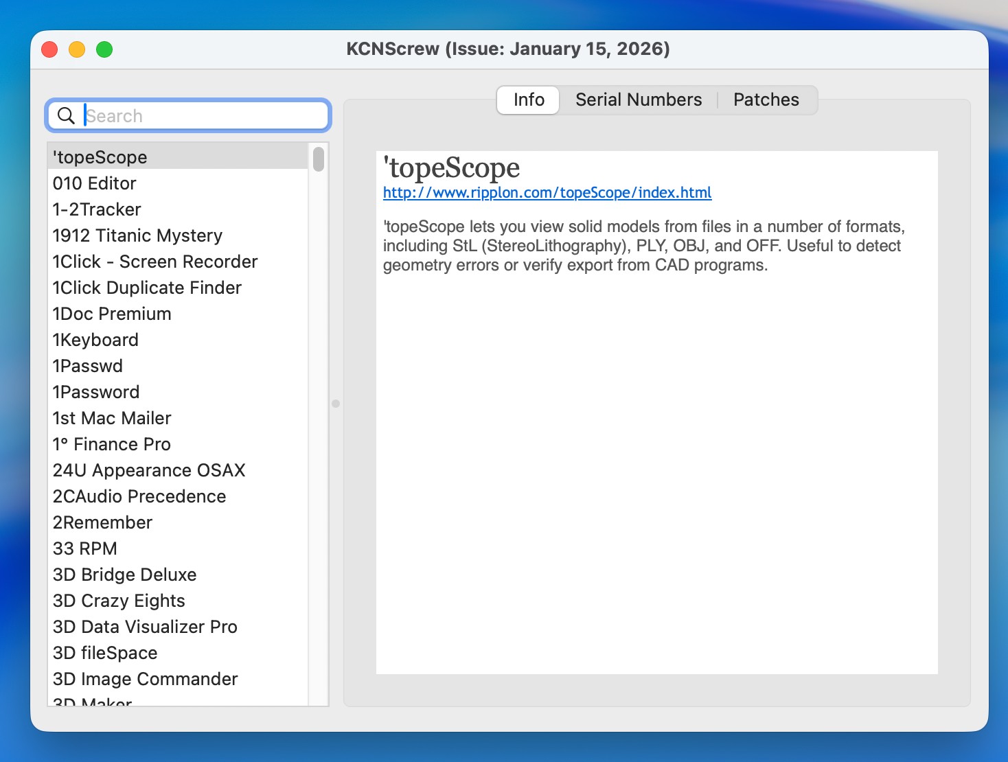 海量序列号数据库:涵盖上千款常用 Mac 应用的序列号与注册码。