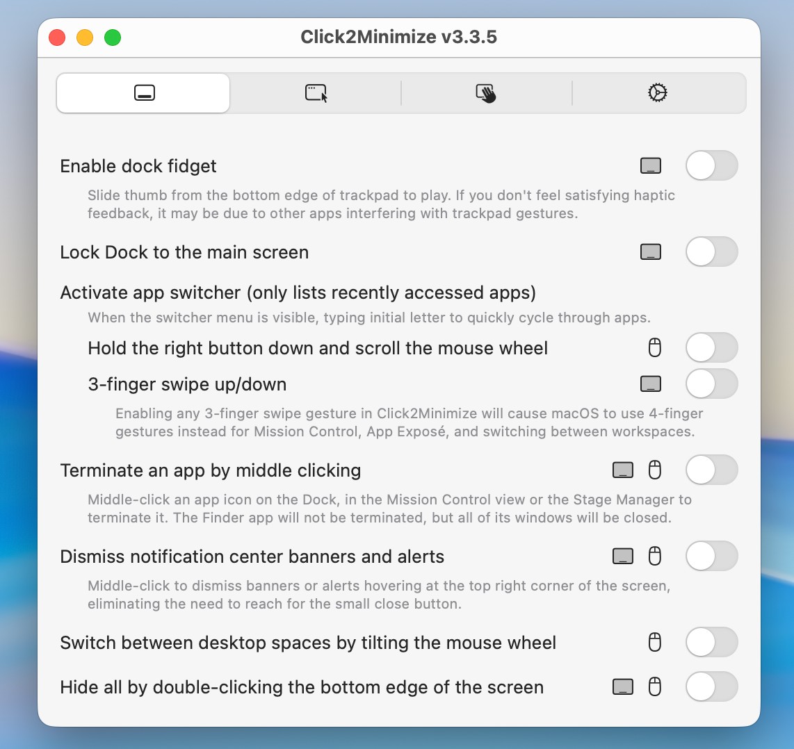 Click2Minimize 的最大特色在于它对 macOS 操作逻辑的“补充而非替代”。