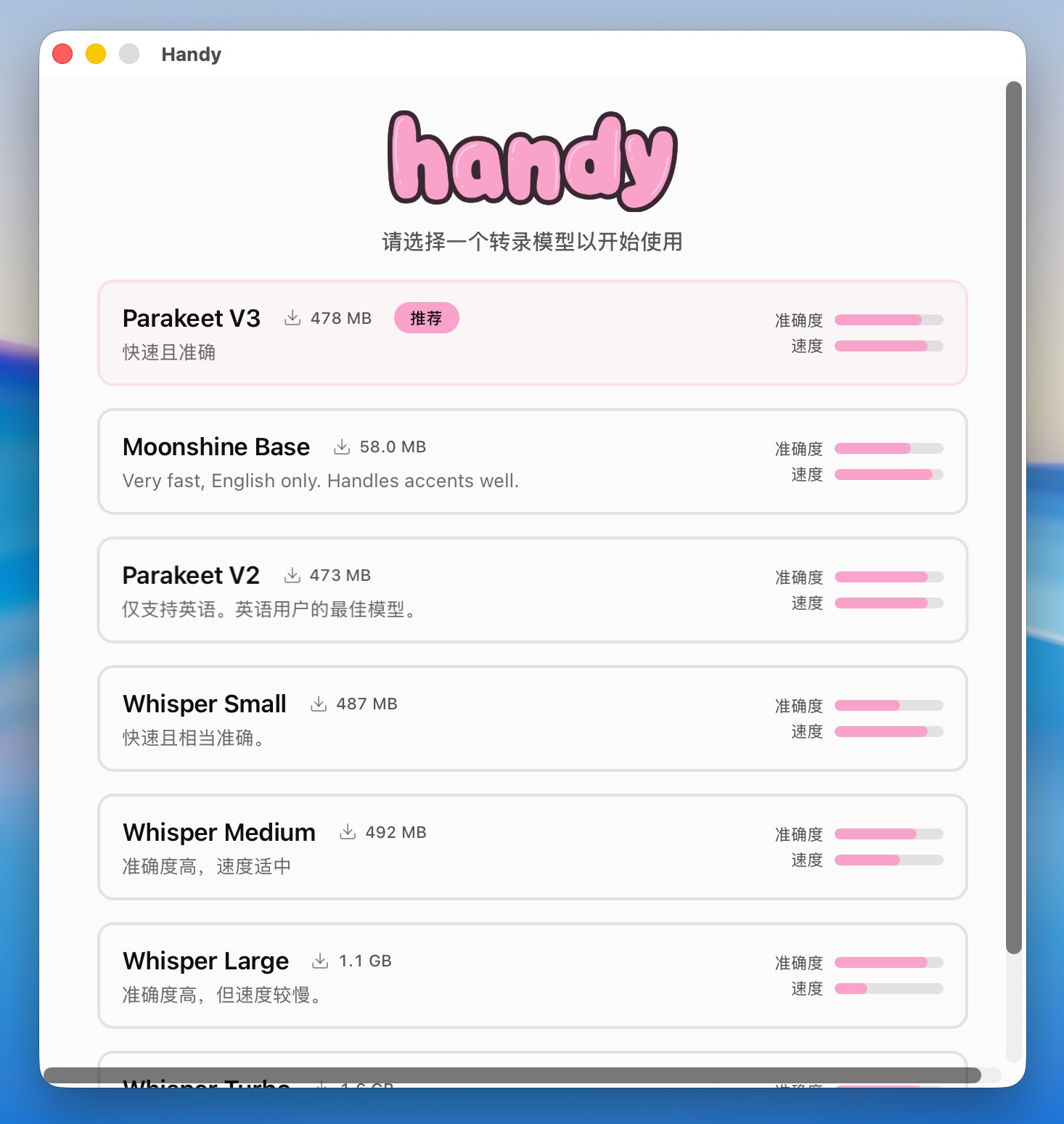 这种克制而明确的设计思路,使 Handy 在同类 Mac 语音输入工具中显得十分纯粹。