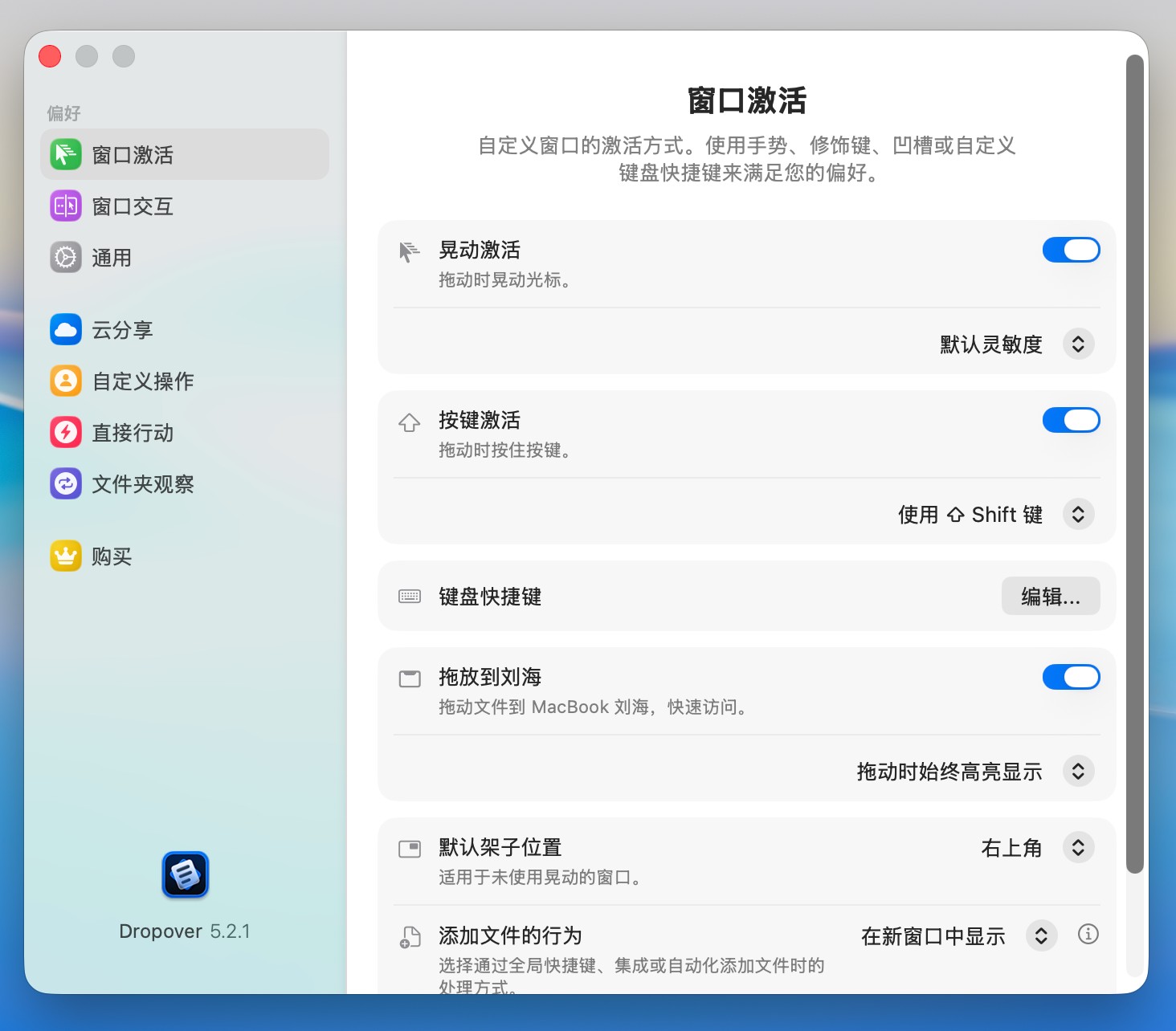 在 Mac 上使用 Dropover Pro 的体验非常自然。通过简单的拖拽或手势即可唤出暂存区,文件会以悬浮窗口的形式集中展示,不遮挡主要工作内容。暂存区可自由移动与调整大小,在不同应用之间切换时始终保持可用。整体响应速度快,拖拽过程顺畅,符合 macOS 一贯的操作习惯。即使在 Finder、设计软件或浏览器之间频繁切换,Dropover Pro 也能保持稳定运行,让文件整理过程变得直观而高效。