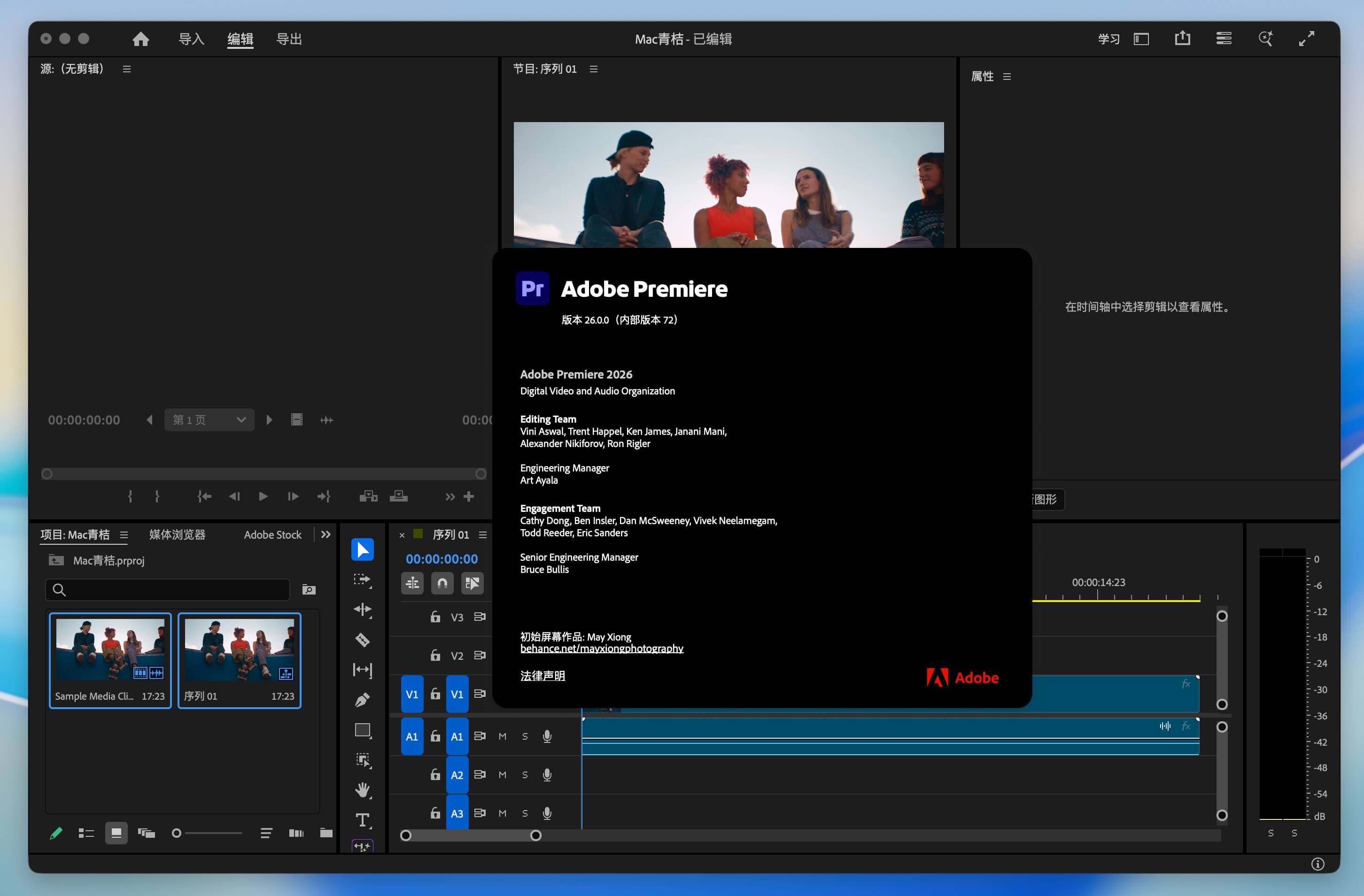 Adobe Premiere Pro 2026 是 Adobe 公司推出的专业视频编辑软件最新 Mac 版本,是行业内广泛使用的视频剪辑与后期制作平台之一。作为 Creative Cloud 一员,Premiere Pro 2026 在继承历代成熟编辑功能的基础上,进一步优化了对 macOS 和 Apple Silicon(如 M 系列芯片)的深度适配,使剪辑、渲染与导出等工作在 Mac 环境下更加流畅、高效。新版在多摄像机剪辑、音频整合与动态效果方面提供更完善的支持,同时通过与 After Effects、Media Encoder 等工具的无缝协作,为视频创作者提供完整的端到端专业制作流程。