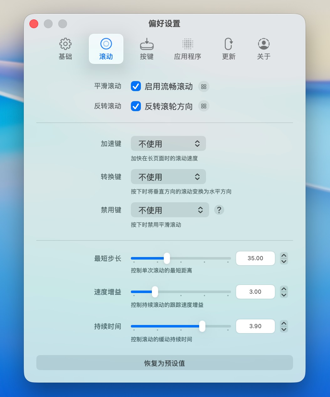 个性化定制:MOS 提供自定义设置,用户可以根据个人使用习惯来调整滚动速度和方向,满足各种需求。