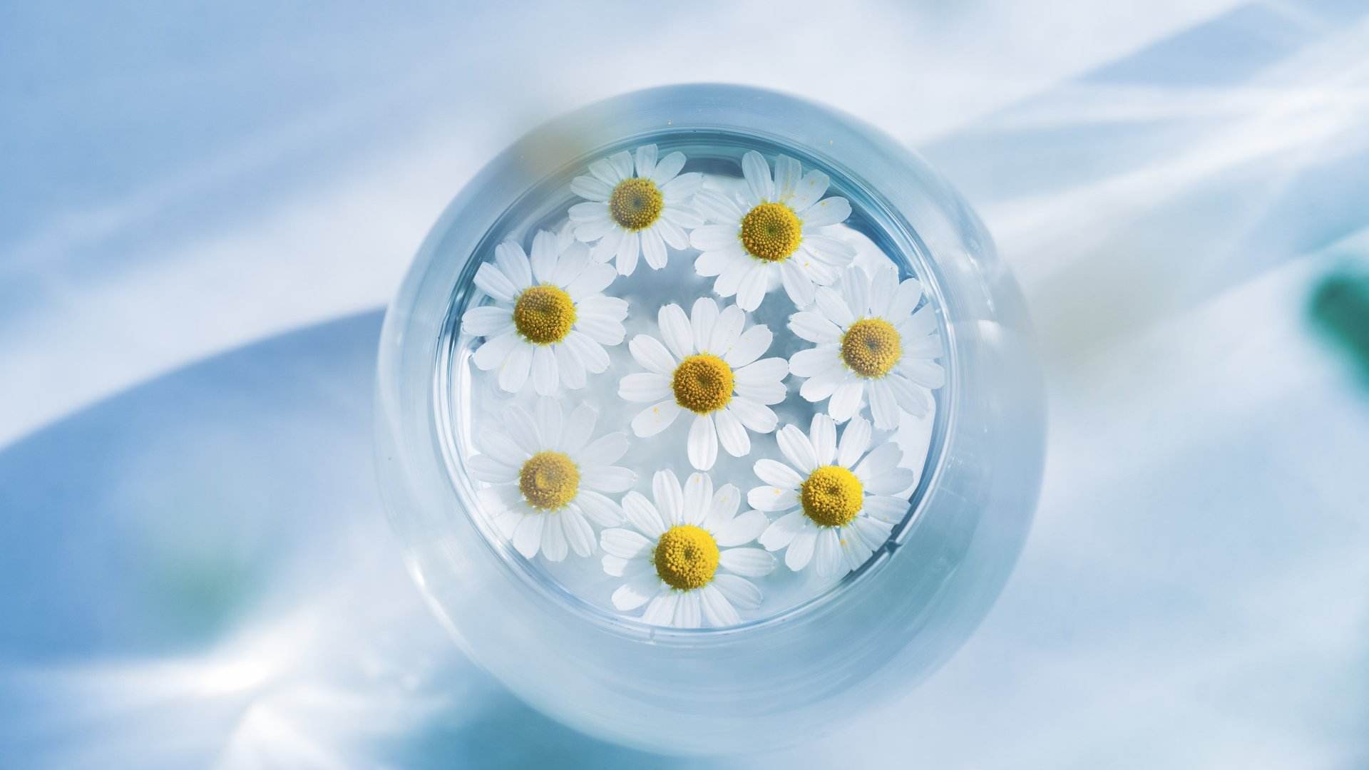 花 蓝色背景 雏菊 水 电脑壁纸 4K壁纸