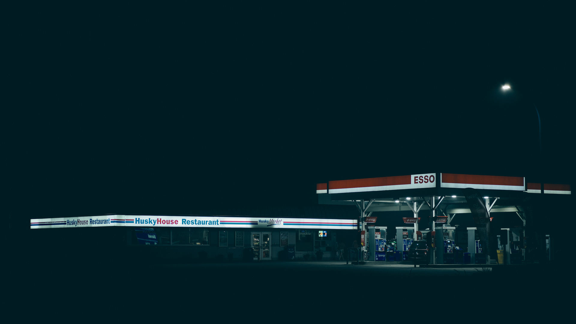 加油站 夜间 摄影 弱光 埃索 赫斯基餐厅 电脑壁纸 4K壁纸