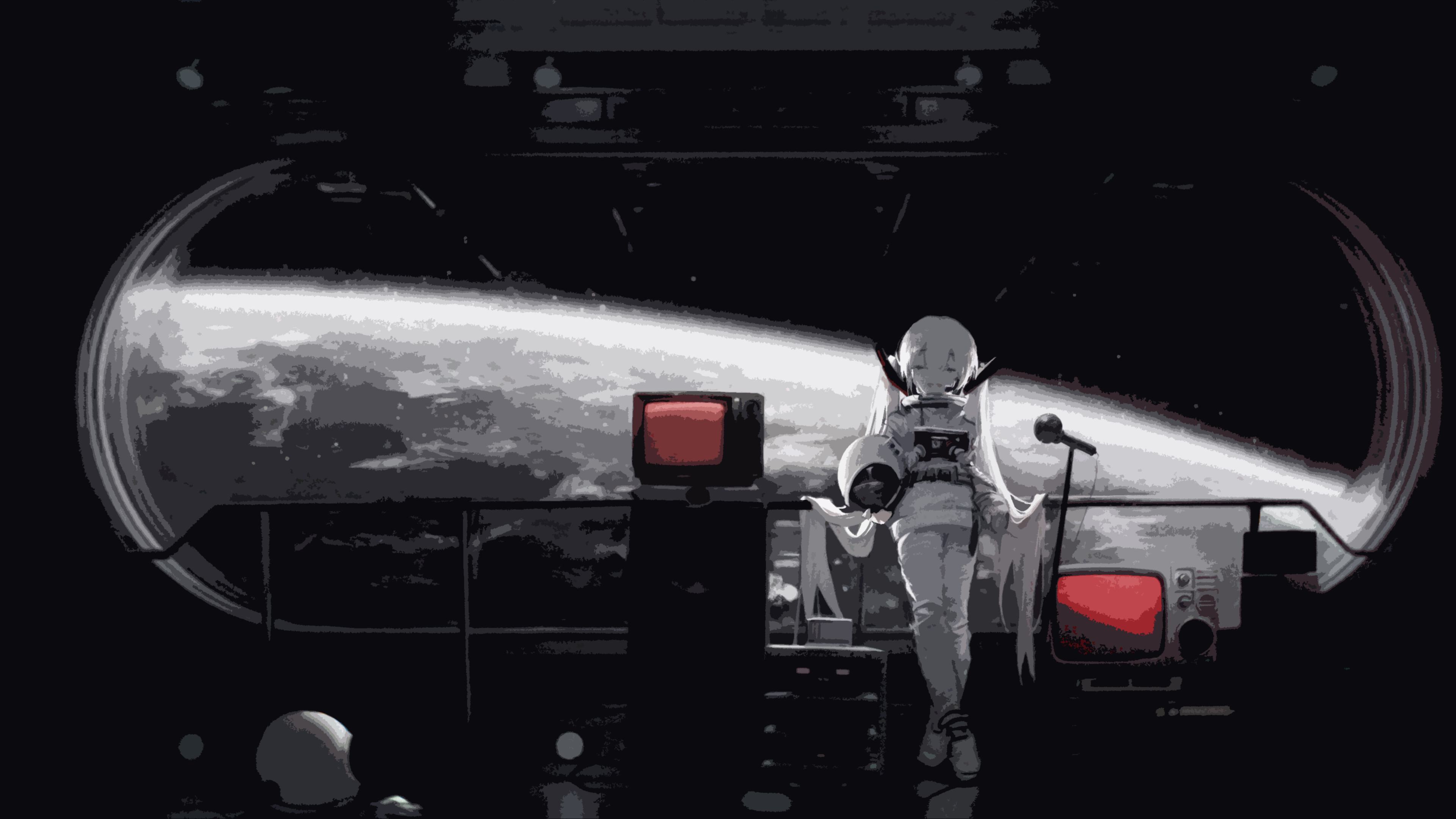 长发 宇航员 动漫 女孩 极简主义 单色 电视 轨道 地球 行星 太空 房间 宇宙飞船 科幻小说 未来 4K壁纸