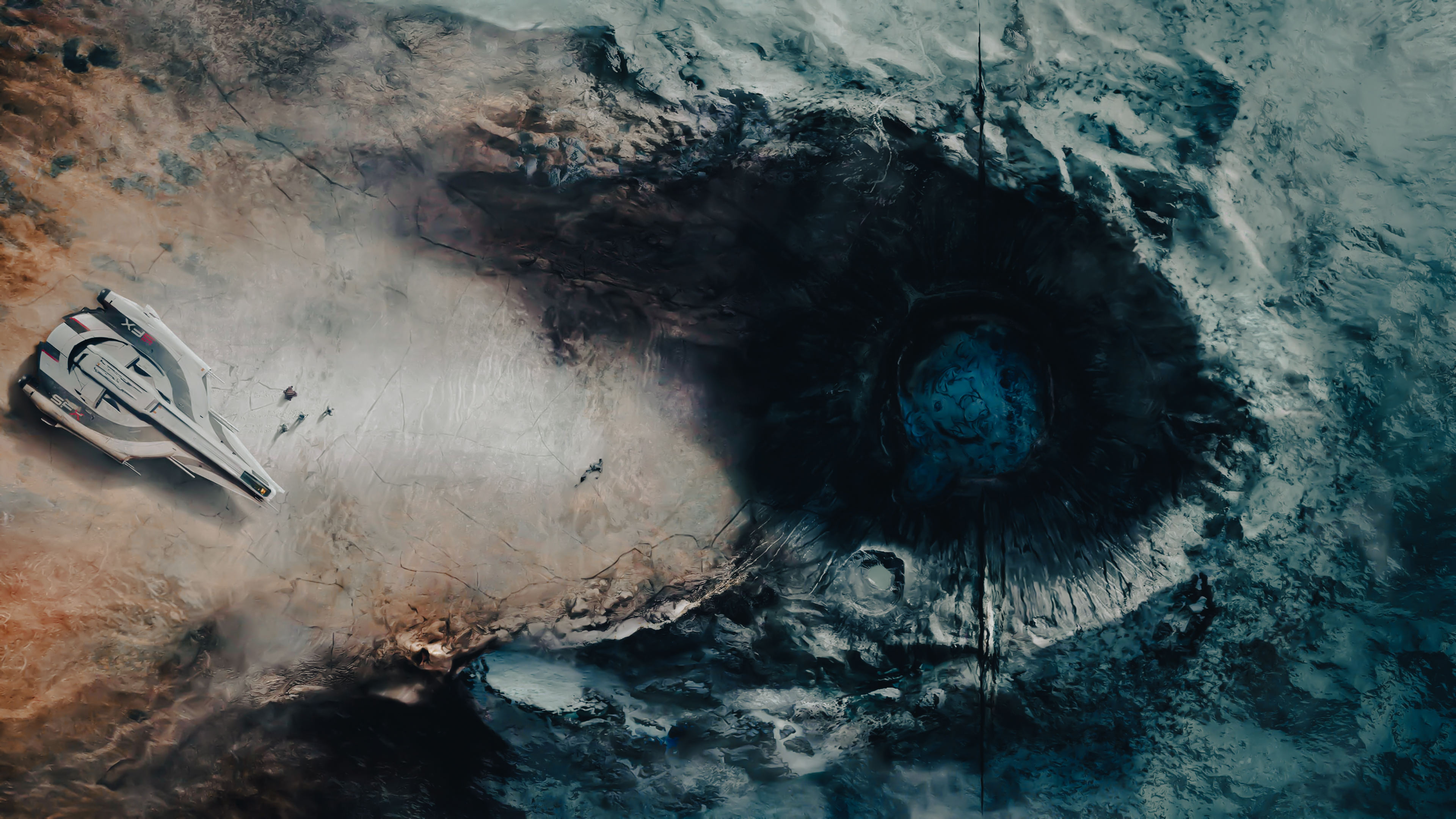冒险家 CGI 电子 游戏 未来派 科幻 小说 宇宙 飞船 行星 陨石坑 空间 繁荣 风景 艺术品 4K壁纸