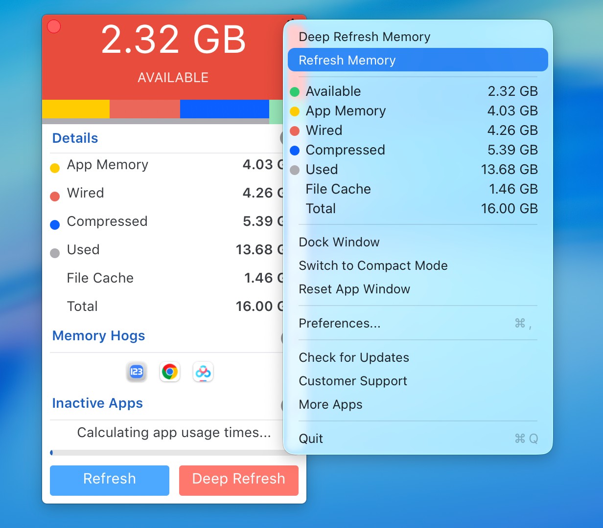 在 macOS 菜单栏中实时显示内存数据,方便随时查看。 - 内存使用细节展示