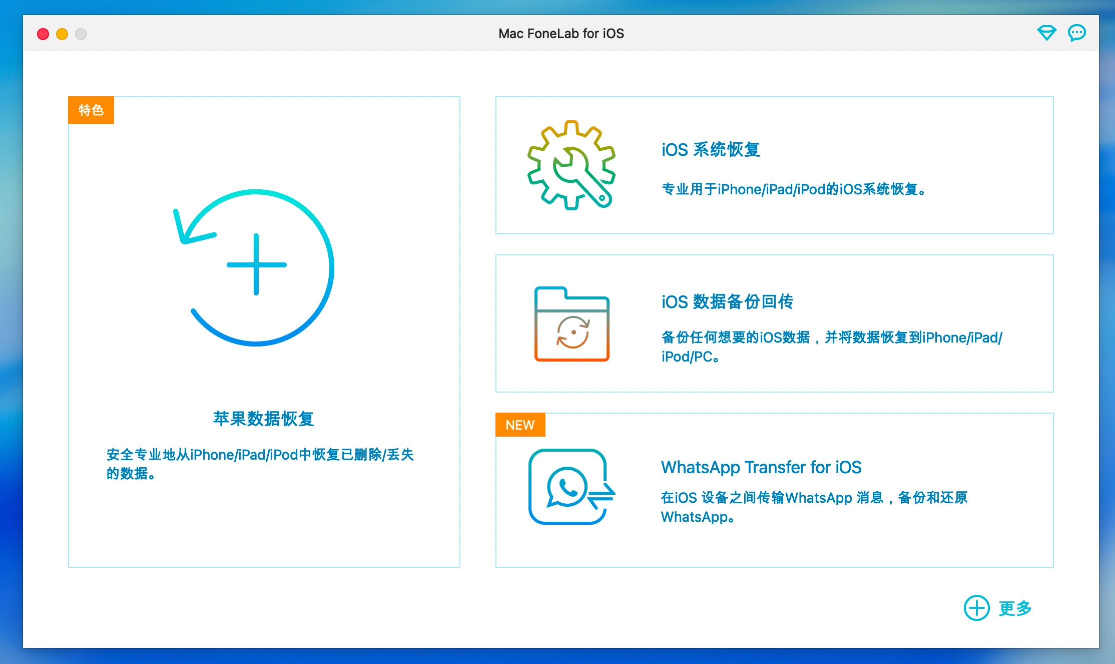 Mac FoneLab for iOS 是一款功能全面的 iOS 数据恢复工具,在 macOS 平台上提供了从“数据找回”到“系统修复”的一站式解决方案。它最大的优势在于支持多种恢复方式以及可视化选择恢复,既提高了成功率,也降低了使用门槛。